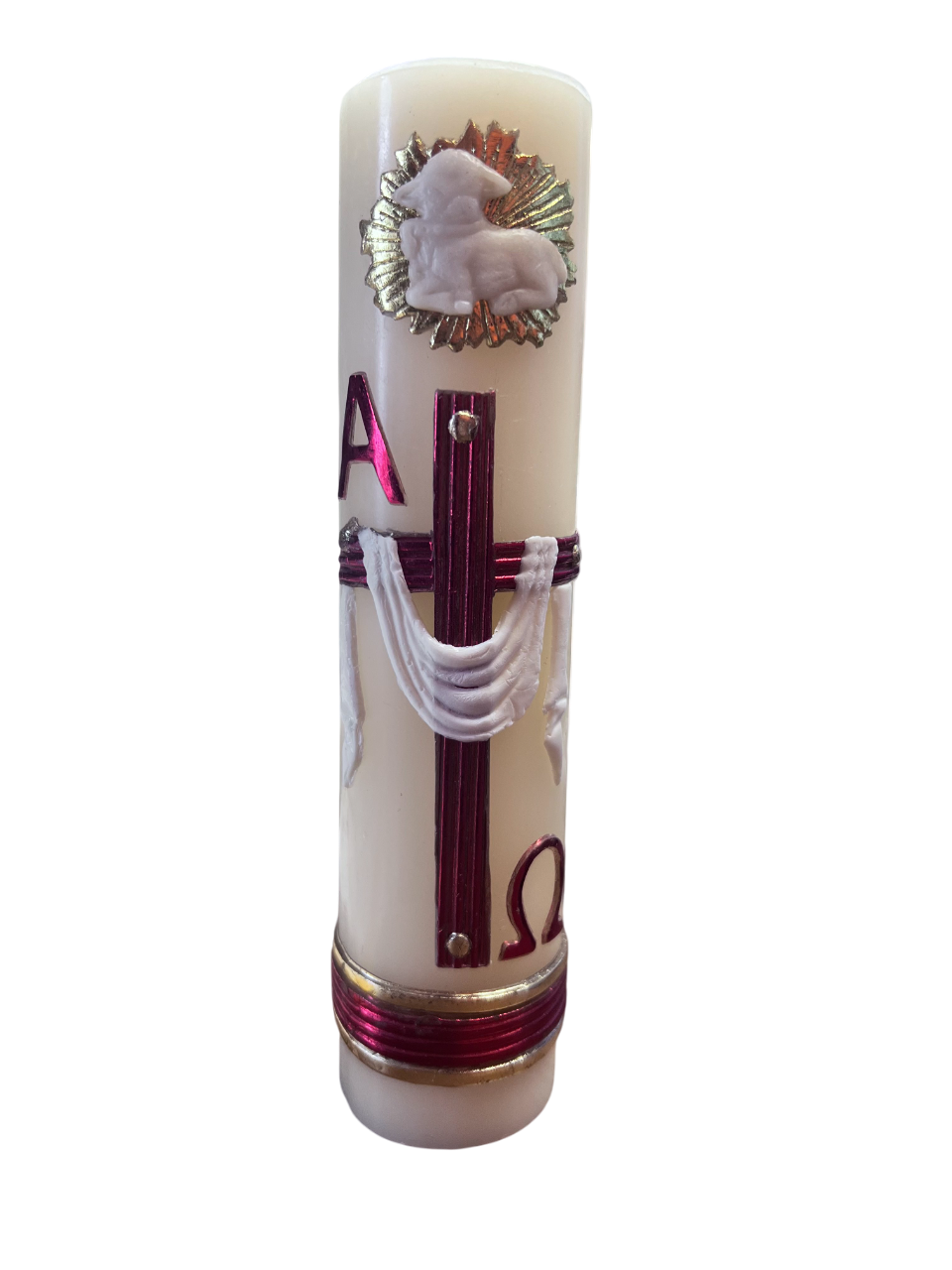 This blessed Paschal candle is a living sign of Christ’s Resurrection. Ideal for prayer at home during Lent, Holy Week, and easter, as well as any other time of prayer. It measures 8 inches tall by 1.8 inches thick A spiritual gift full of hope.