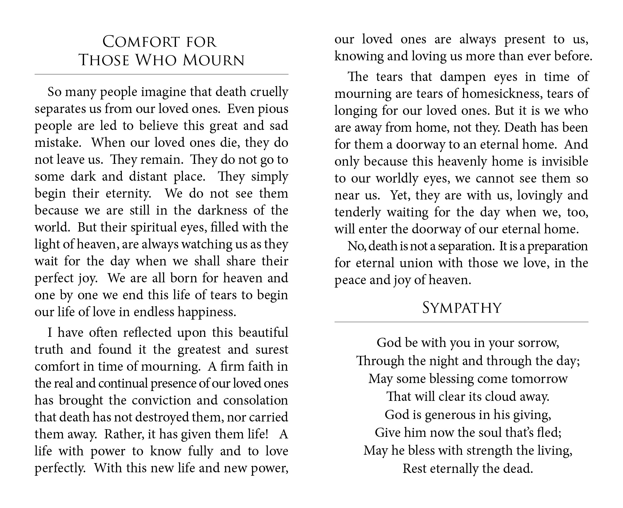 Sympathy and Comfort for Those Who Mourn
